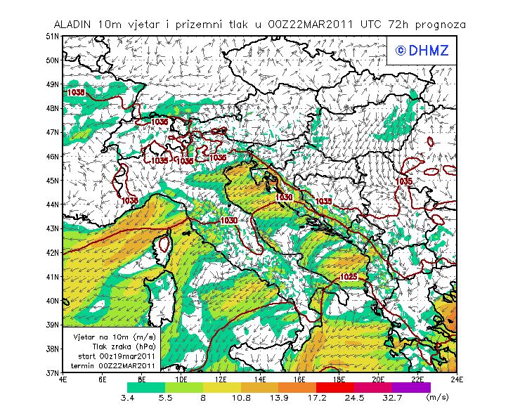Vjetar smjer i brzina - profil Gargano