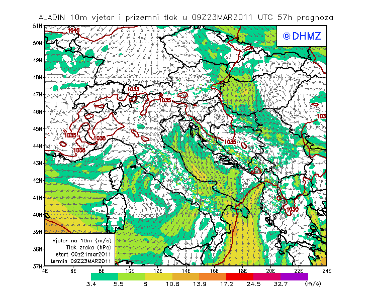 Vjetar smjer i brzina - profil Jabuka