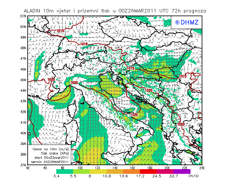 Vjetar smjer i brzina - profil Jabuka