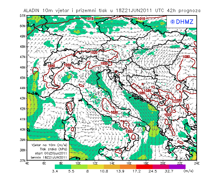 Vjetar smjer i brzina - profil Jabuka