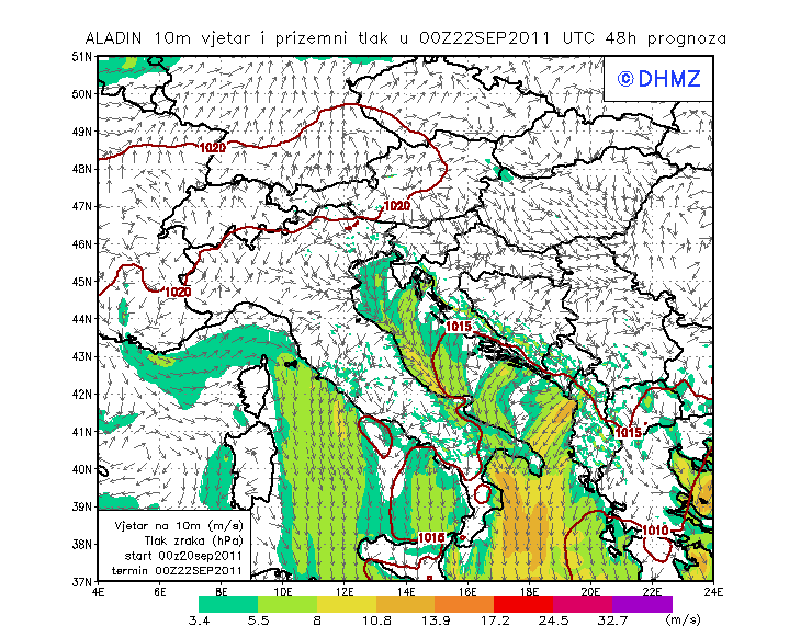 Vjetar smjer i brzina - profil Jabuka