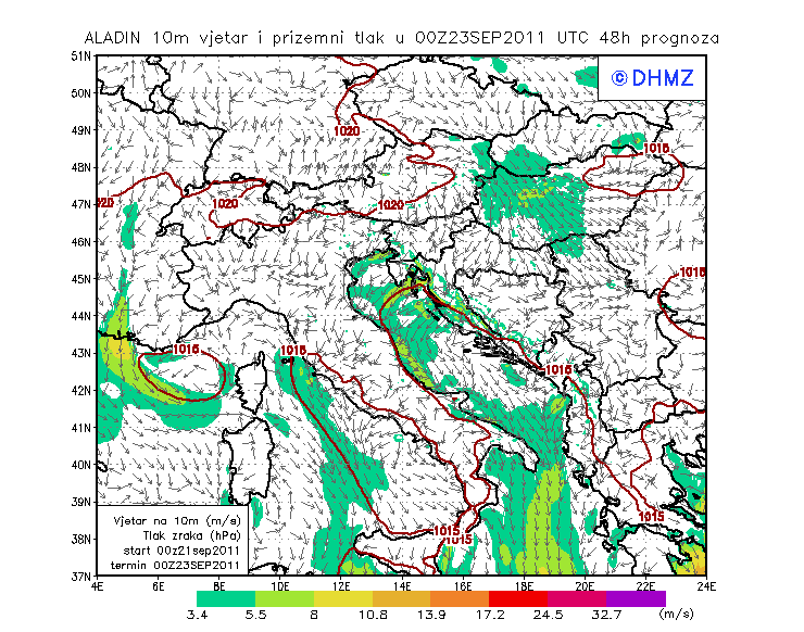 Vjetar smjer i brzina - profil Jabuka
