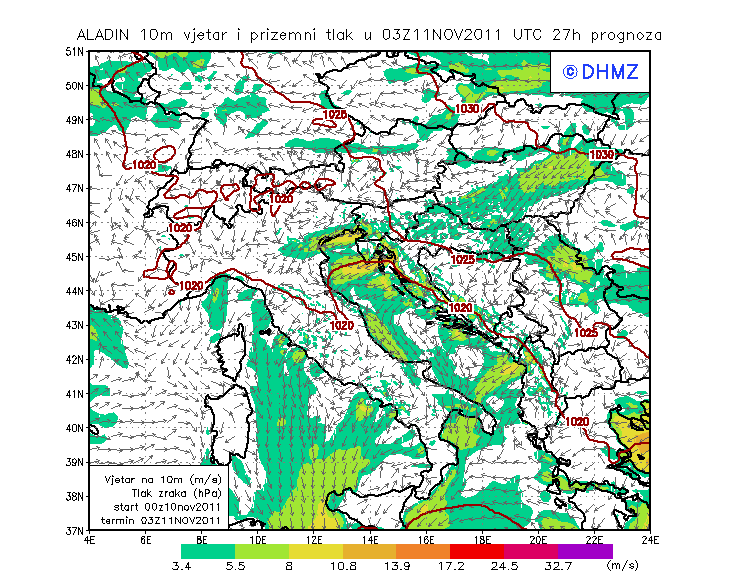 Vjetar smjer i brzina - profil Jabuka