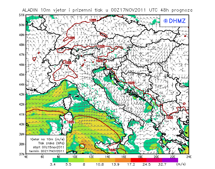 Vjetar smjer i brzina - profil Jabuka
