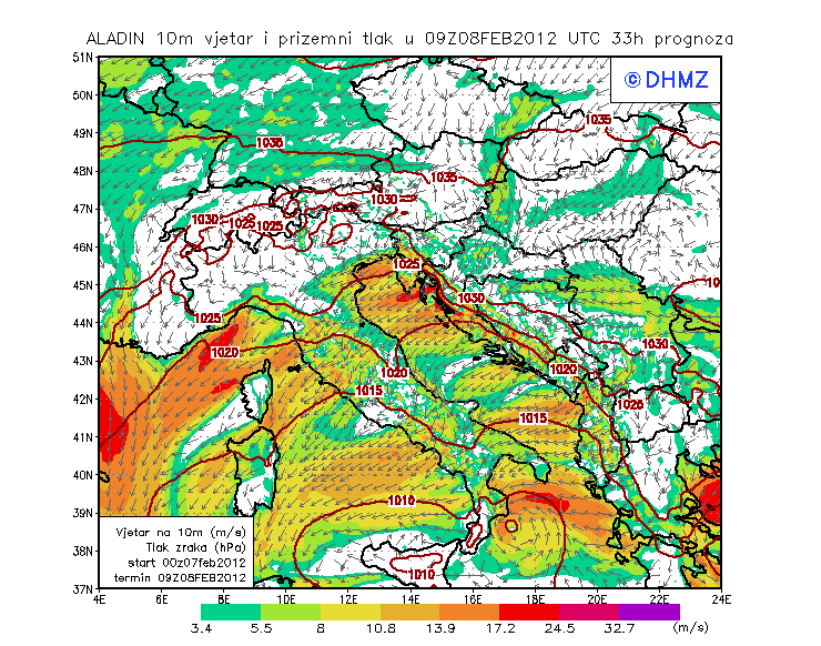 Vjetar smjer i brzina - profil Gargano