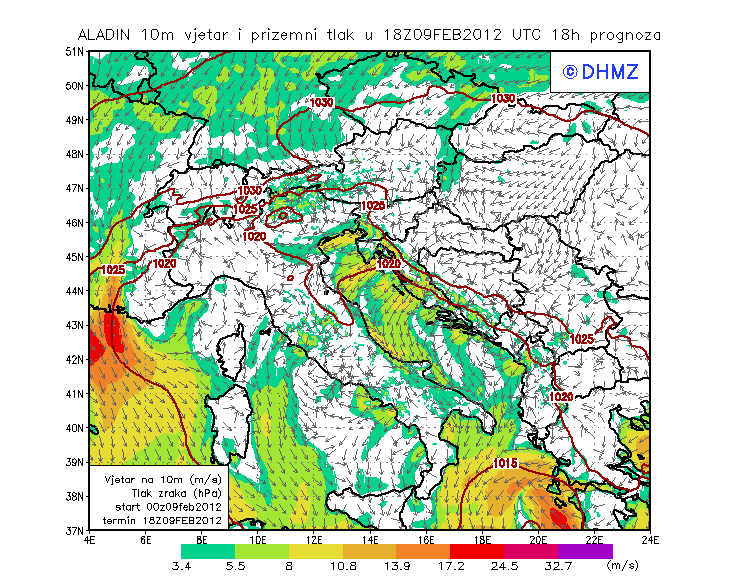 Vjetar smjer i brzina - profil Jabuka