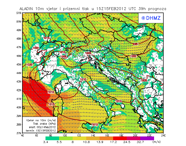 Vjetar smjer i brzina - profil Jabuka