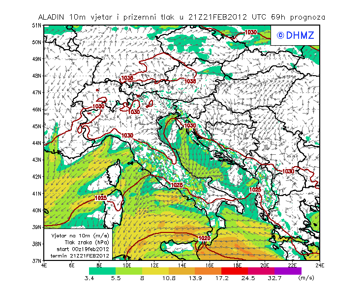 Vjetar smjer i brzina - profil Gargano