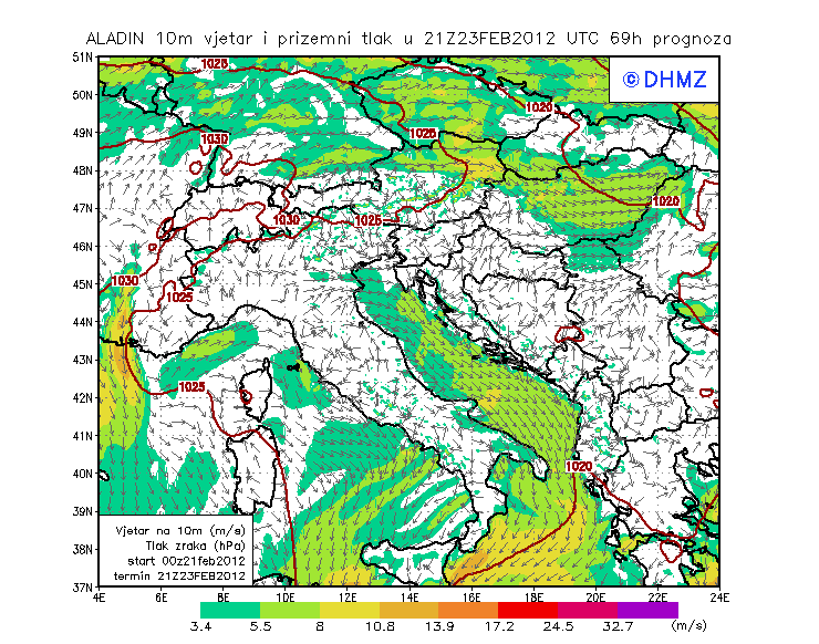 Vjetar smjer i brzina - profil Gargano