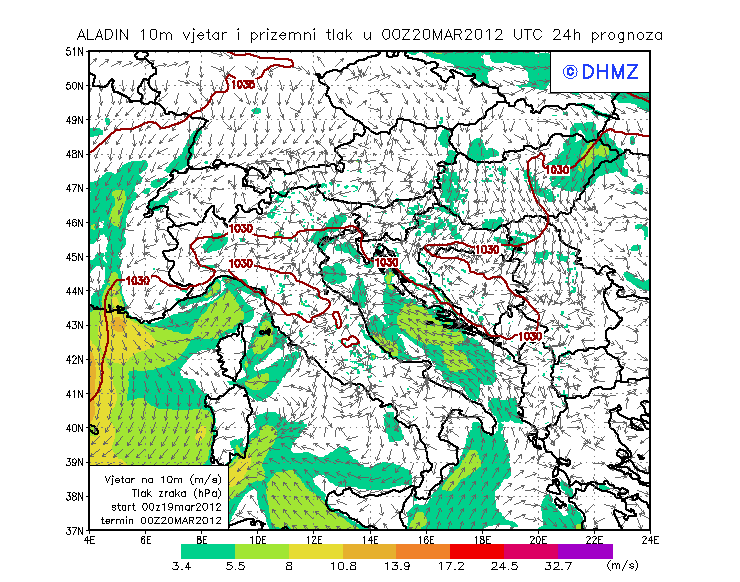 Vjetar smjer i brzina - profil Jabuka