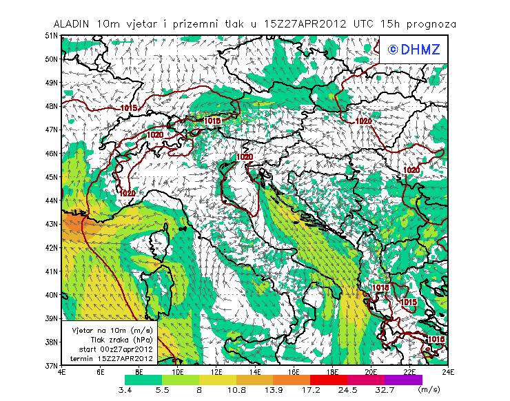 Vjetar smjer i brzina - profil Jabuka