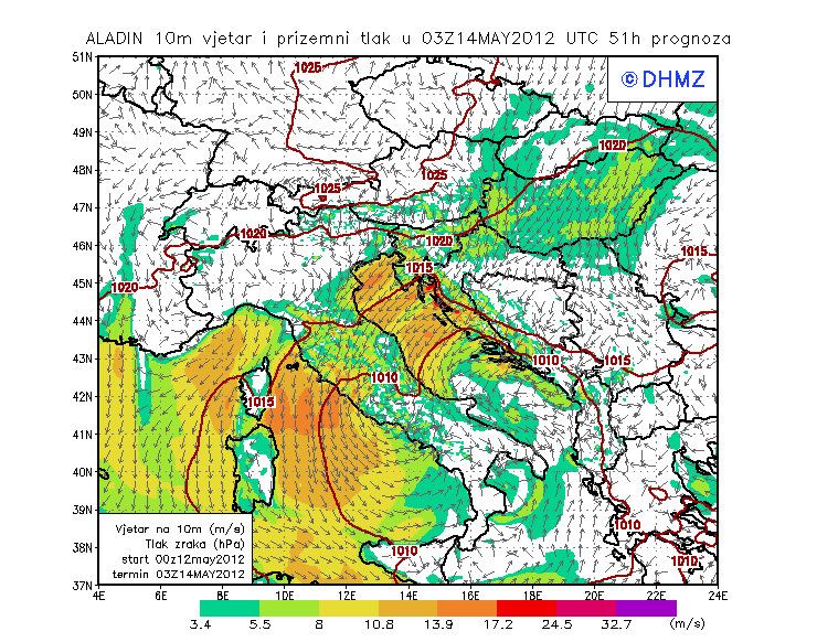 Vjetar smjer i brzina - profil Jabuka